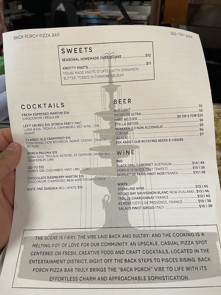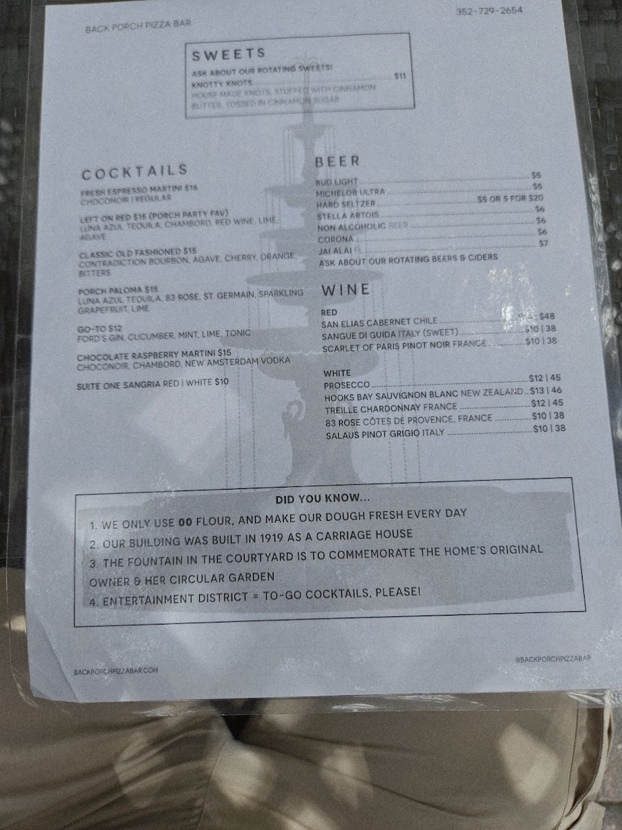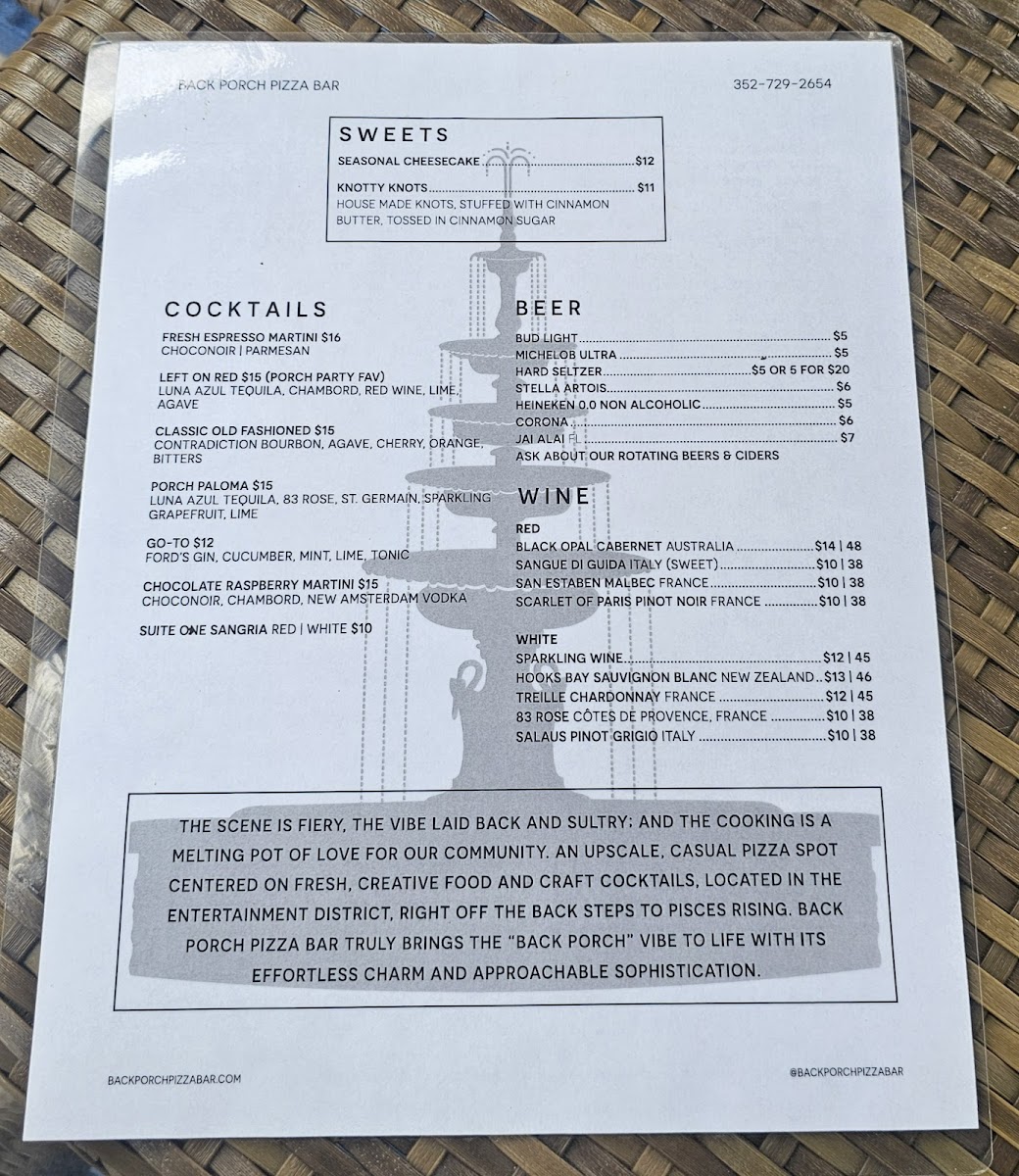 Overall, Back Porch Pizza Bar offers a perfect blend of comfort food, craft cocktails, and exceptional pizzas, making it a great spot for any occasion.